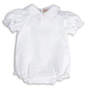 White Short Sleeve Bubble w/Light Pink Trim